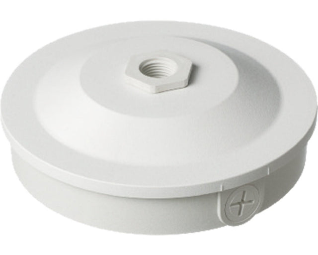 Versatile box for power or low voltage. Mounts security cameras, fixtures, detectors and more inside or out. Box includes 3/4" to 1/2" reducing bushing. Mounts to conduit with threaded opening on back of box.