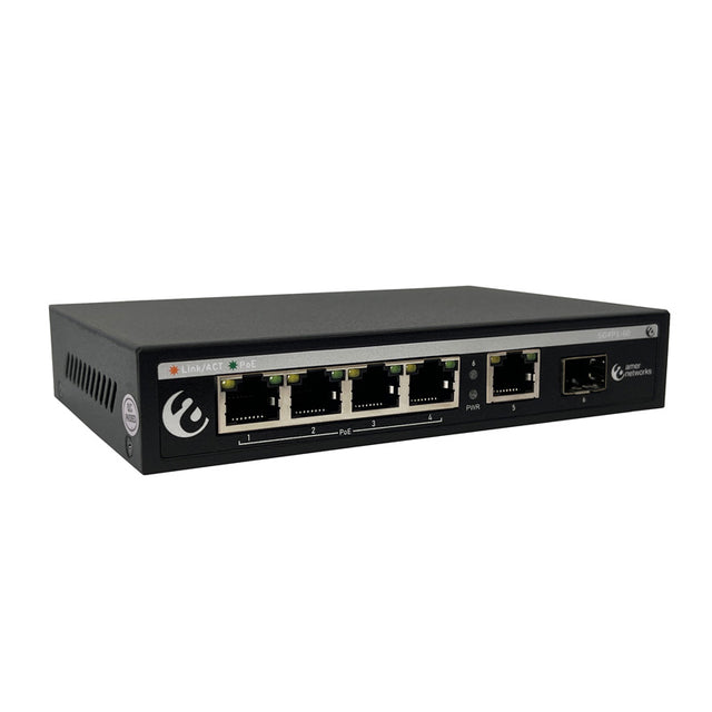 Amer Networks Switch 4-Port Gigabit PoE Switch with 1 Gigabit RJ45 and 1 SFP