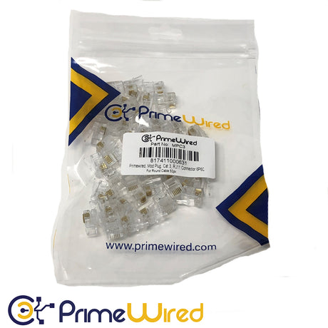 Primewired Mod Plug, Cat3, RJ12 Connector 6P6C For Round Phone Cable 50pk